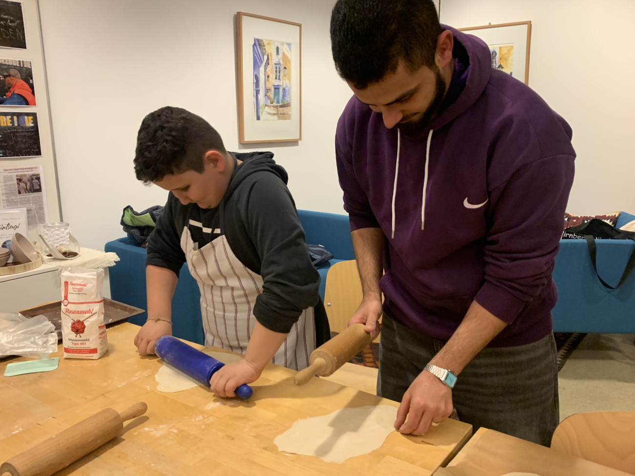Am 26.März ging es los: Kadir und Dilek aus Erlangen zeigten uns, wie man Lahmacun und Baklava bäckt. Ein Fest für alle Sinne, mit Begegnungen zwischen jung und alt, Süßem und Herzhaftem, Raum auch zum Deutschsprechen und ein wenig auch zum Türkischlernen. Herzlichen Dank vor allem an unsere beiden leidenschaftlichen Vorköche und alle Mitschnippler, Teigausroller und Mit-Genießer*innen!