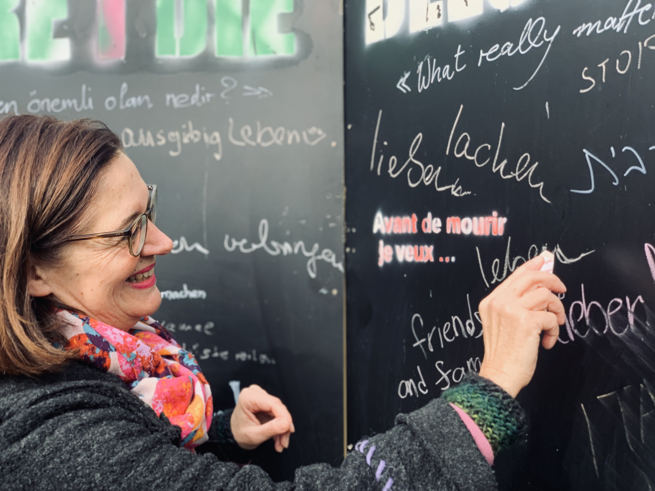 Die vielen Beiträge, die an diesem Herbstsamstag, dem 12. Oktober, von Passant*innen auf den weithin sichtbaren Tafeln direkt zwischen Rathaus und Schönem Brunnen hinterlassen wurden, machen noch einmal in besonderer Weise deutlich, wie unterschiedlich Menschen von dem Impuls berührt werden, den der Satzanfang "BEFORE I DIE..." auslöst. Bis zu einer interreligiös gestalteten Finisage am Mi. 20.11., 19 Uhr in der Reformierten Kirche St. Martha in Nürnberg werden die Tafeln unter u.a. noch im Buddhistischen Zentrum Boddhi-Baum in Fürth, bei der Bahai-Gemeinde in Nürnberg und in Katholischen Klarakirche zu Gast sein. Herzliche Einladung!