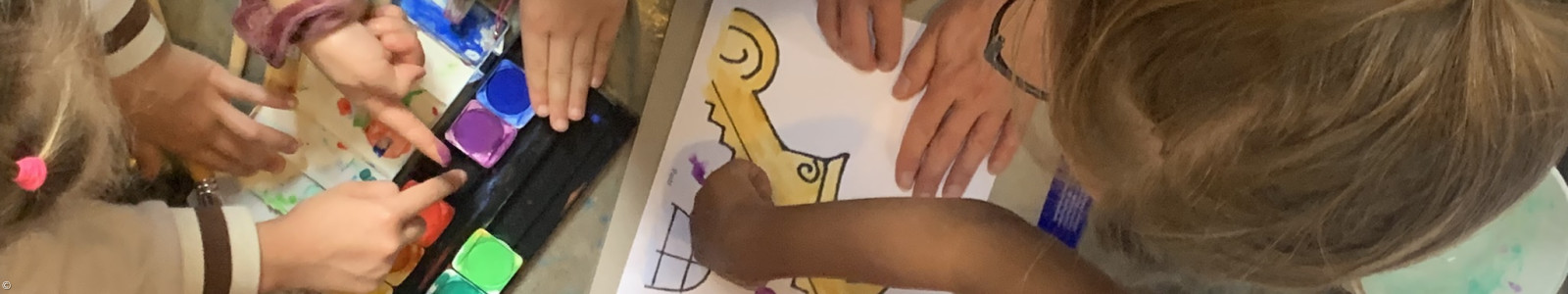 Den Höhepunkt der Feier markierte eine Kreativaktion, bei der alle 13 Grundschulklassen, einen Ausschnitt ihres Schulgebäudes mit den Fingerabdrücken aller Schüler*innen gedruckten. Abschließend wurden diese Teilstücke dann zu einem bunten Ganzen, bei dem Jede und Jeder ein sichtbarer und wichtiger Teil ist.